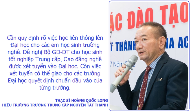Ngoài ra, điểm mấu chốt mà Thạc sĩ Hoàng Quốc Long kiến nghị là cần quy định rõ việc học liên thông lên Đại học cho các em học sinh trường nghề.