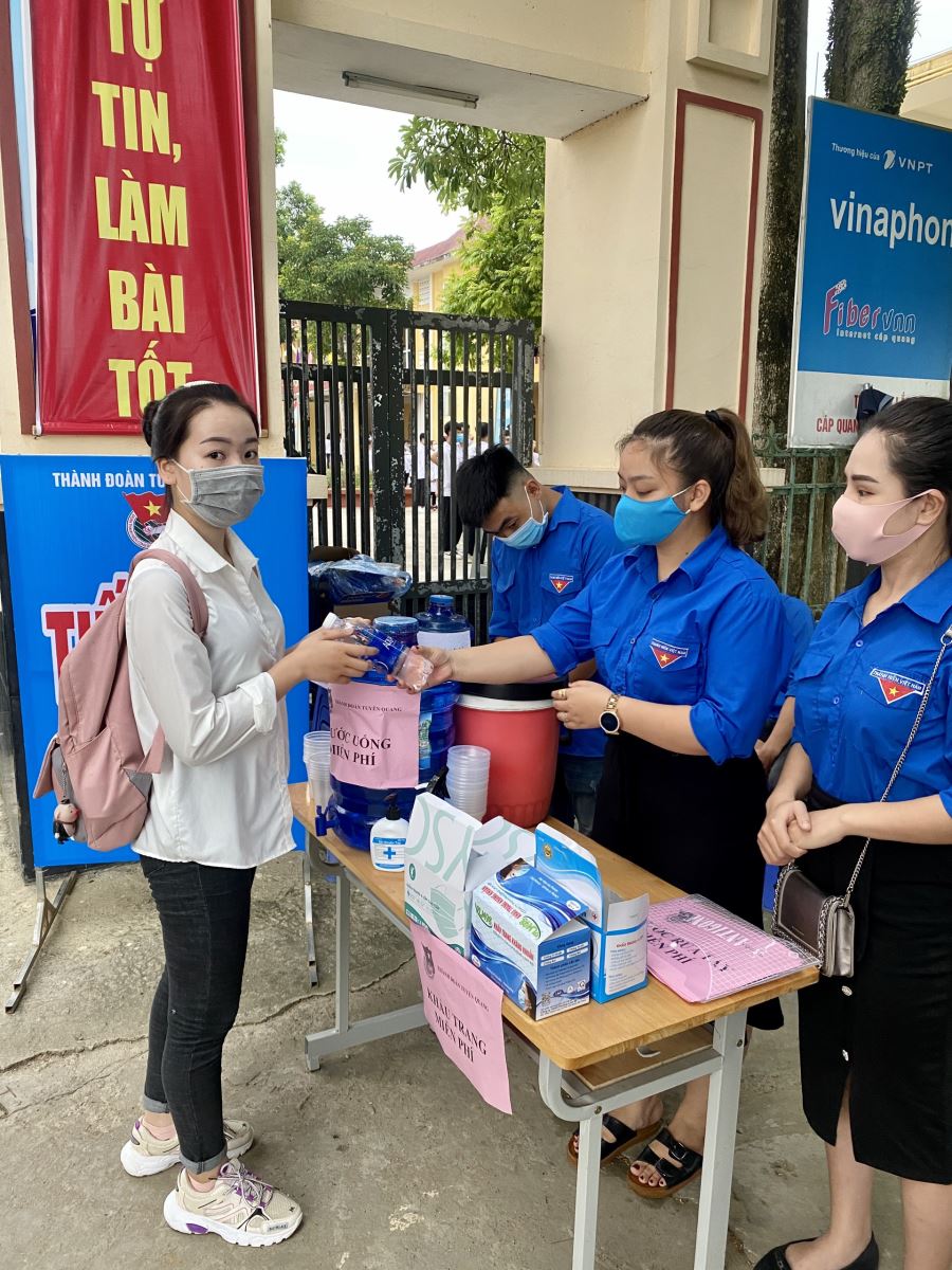 Phối hợp với Đoàn thanh niên phường Ỷ La, Đoàn thanh niên trường Cao đẳng nghề Kỹ thuật – Công nghệ Tuyên Quang tổ chức triển khai tư vấn, hướng dẫn, hỗ trợ thí sinh về thông tin tuyển sinh, hướng dẫn phòng thi, phát nước uống, xử lý các tình huống khẩn cấp, xe ôm miễn phí. Đặc biệt năm nay hoạt động tiếp sức mùa thi còn tổ chức phát khẩu trang y tế miễn phí, phát nước sát khuẩn và hướng dẫn thí sinh đeo khẩu trang đúng cách, sát khuẩn tay trước khi vào phòng thi.