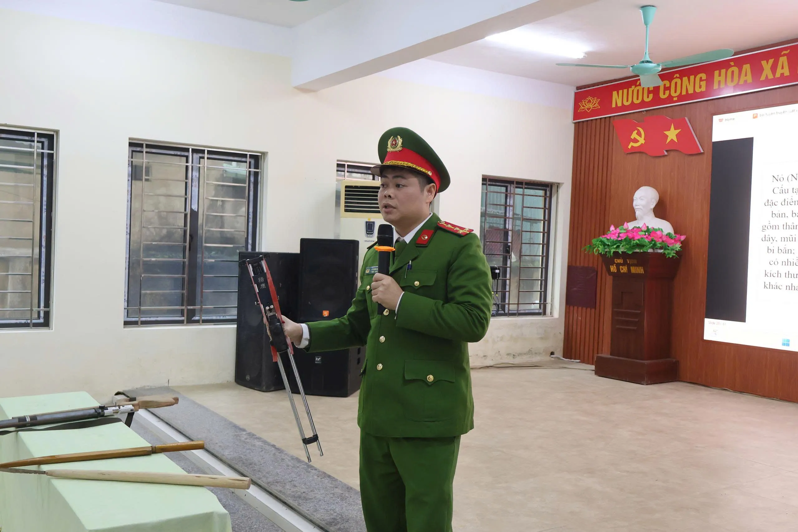 Báo cáo viên phòng Cảnh sát hình sự và Công an Phường Hà Giang 2 - Công an tỉnh Tuyên Quang tham gia tuyên truyền tại buổi đối thoại