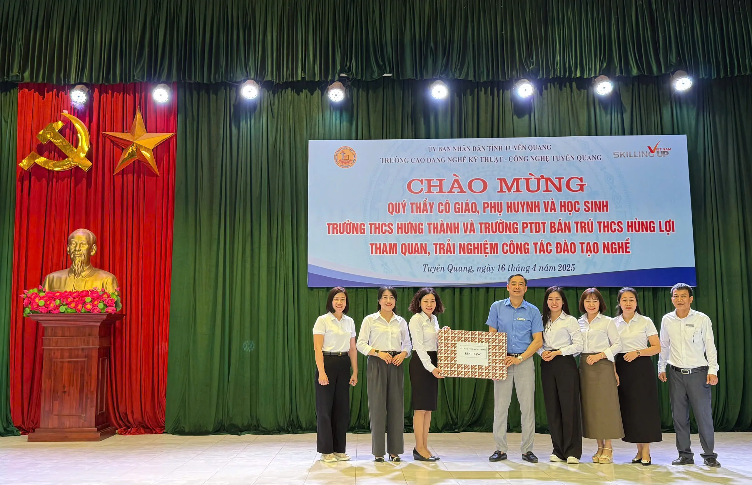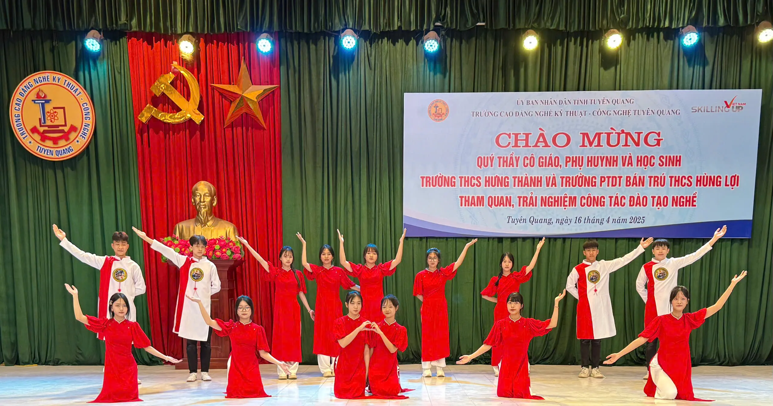 Ngày 16/4/2025, Trường Cao đẳng nghề Kỹ thuật - Công nghệ Tuyên Quang đón 250 giáo viên, phụ huynh và học sinh khối 9 Trường THPT Hưng Thành và trường Phổ thông dân tộc bán trú THCS Hùng Lợi đến tham quan, trải nghiệm chương trình học nghề.