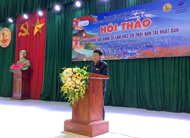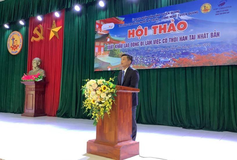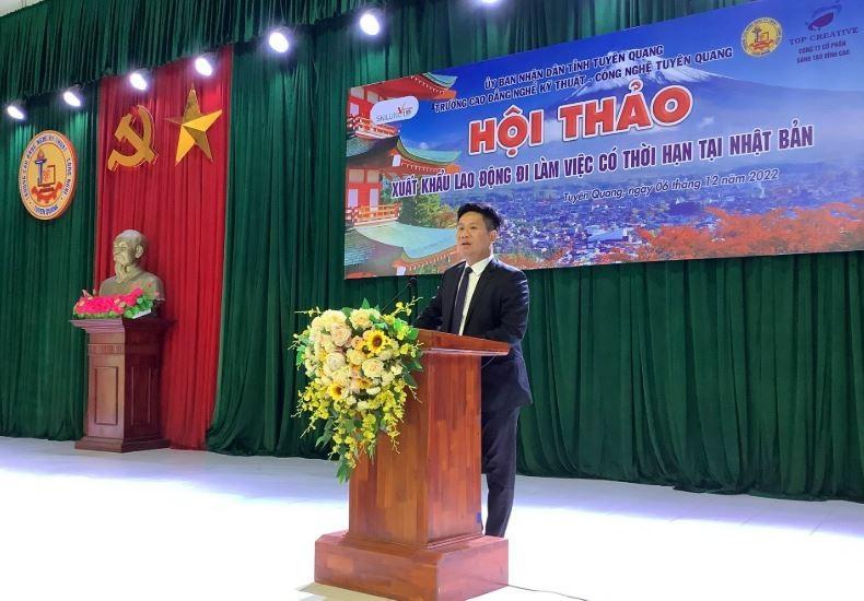 Ngày 06/12/2022, Trường Cao đẳng nghề Kỹ thuật - Công nghệ Tuyên Quang phối hợp cùng Ngân hàng chính sách xã hội tính Tuyên Quang và Công ty Cổ phần Sáng tạo đỉnh cao (Hà Nội) tổ chức Hội thảo Xuất khẩu lao động đi làm việc theo họp đồng tại Nhật Bản.