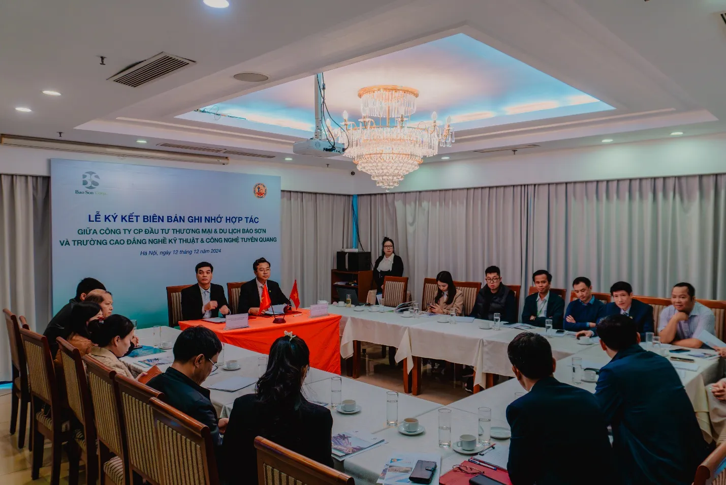 Sau khi thảo luận, Tập đoàn Bảo Sơn đã ký kết thỏa thuận hợp tác với Trường Cao đẳng nghề Kỹ thuật – Công nghệ Tuyên Quang, trong đó tập trung vào các lĩnh vực chủ yếu: Hợp tác nghiên cứu khoa học, đào tạo và chuyển giao, phát triển các chương trình đào tạo, hệ thống kỹ năng làm việc chuyên nghiệp trong môi trường quốc tế cho học sinh, sinh viên; Tham gia quá trình xây dựng bài giảng, tham gia giảng dạy, đánh giá, định hướng nghề nghiệp cho học sinh, sinh viên; Hợp tác đào tạo Ngoại ngữ; Tiếp nhận và phái cử Kỹ sư, Thực tập sinh, Intership, Du học sinh... đi học tập, làm việc tại nước ngoài theo hợp đồng; Tiếp nhận học sinh, sinh viên thực tập, làm việc tại các doanh nghiệp thuộc Tập đoàn Bảo Sơn; Hỗ trợ thủ tục, phiên dịch cho các đoàn giảng viên, học sinh, sinh viên đi học tập, bồi dưỡng, thực hành, thực tập tại nước ngoài; Tư vấn và chăm sóc sức khoẻ cho cán bộ, nhân viên và học sinh, sinh viên; Cung cấp dịch vụ phục vụ khách quốc tế, hội nghị, lưu trú, dịch vụ tiện ích phục vụ học sinh, sinh viên, cán bộ giảng viên và khách tại trường và bên ngoài nhà trường; Tổ chức sự kiện, dịch vụ du lịch, chương trình trải nghiệm và giao lưu doanh nghiệp.