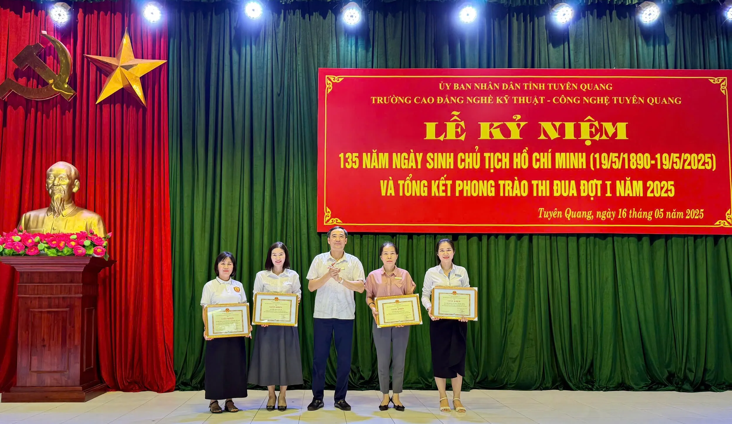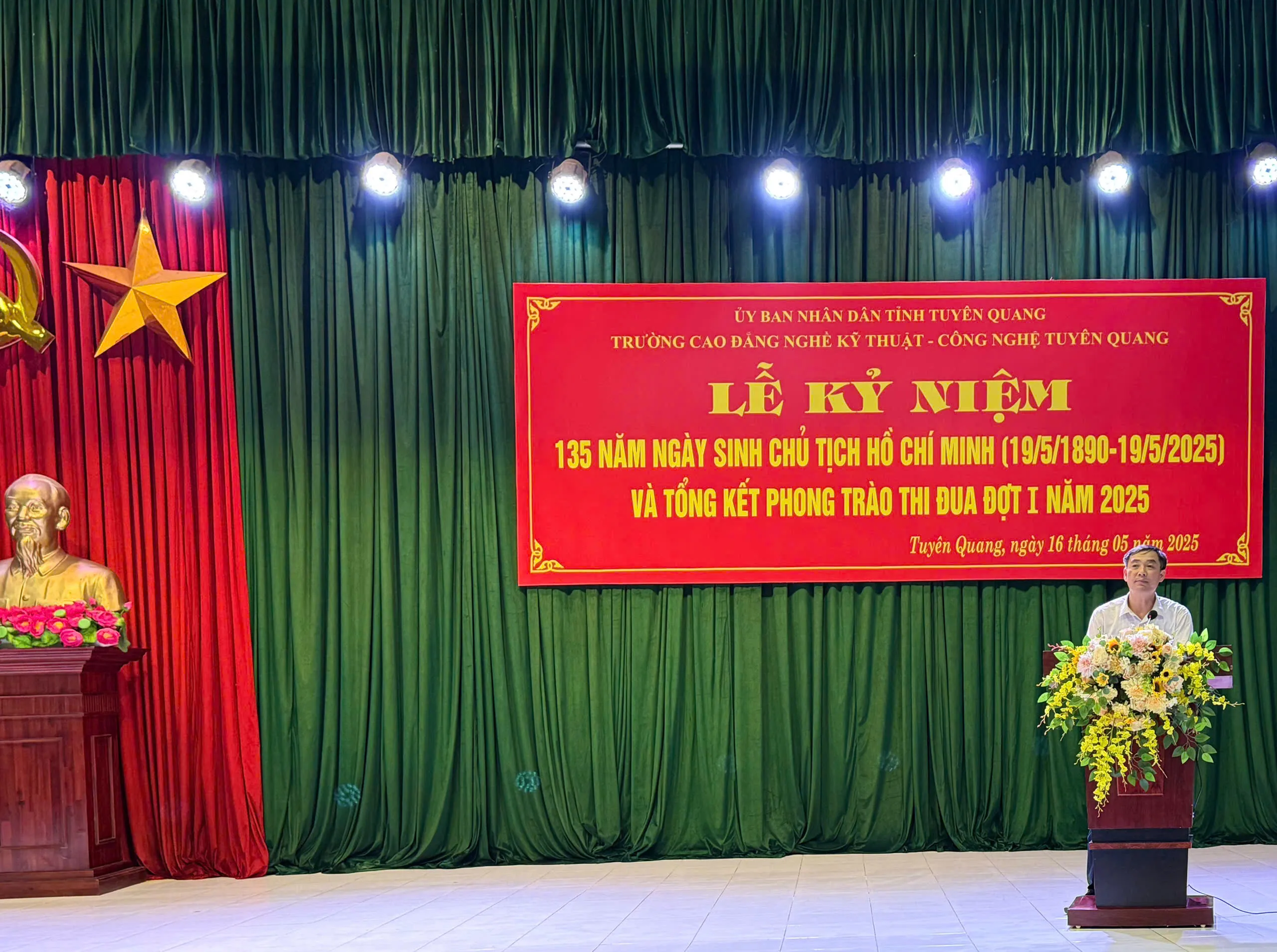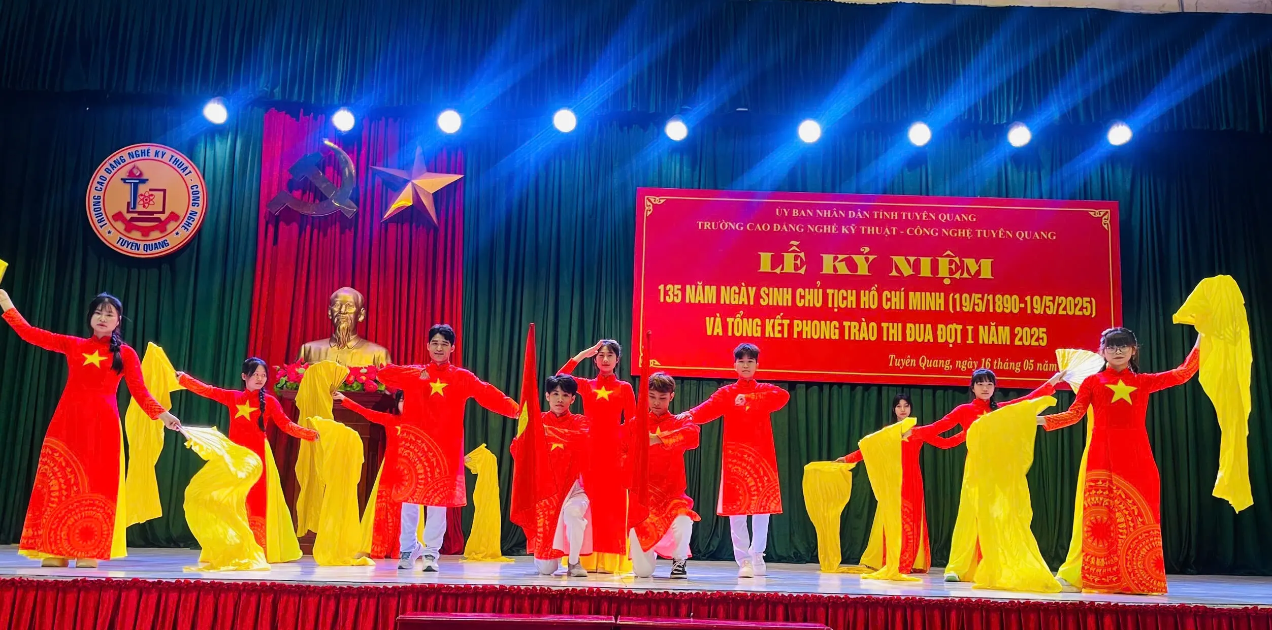 Sáng ngày 16/5/2025 Trường Cao đẳng nghề Kỹ thuật – Công nghệ Tuyên Quang tổ chức Lễ kỷ niệm 135 năm ngày sinh Chủ tịch Hồ Chí Minh (19/5/1890 - 19/5/2025) và tổng kết thi đua đợt I năm 2025.