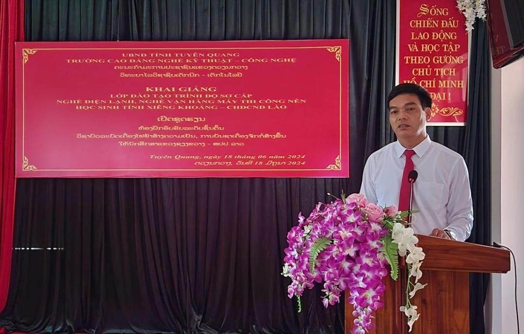 Nhân danh Ban phụ trách lĩnh vực nghề nghiệp của tỉnh Xiêng Khoảng, đồng chí Bun Không Đuông Pha Văn, Hiệu trưởng trưởng Cao đẳng Kỹ thuật nghề tổng hợp tỉnh Xiêng Khoảng bày tỏ lời biết ơn sâu sắc và chân thành tới Đảng - Nhà nước Việt Nam, lãnh đạo tỉnh Tuyên Quang và Ban Giám hiệu, các thầy cô giáo Trường Cao đẳng nghề Kỹ thuật - Công nghệ Tuyên Quang đã tận tình giúp đỡ tỉnh Xiêng Khoảng trên mọi lĩnh vực, trong đó có công tác đào tạo nguồn nhân lực. Từ năm 2021 đến nay, Trường Cao đẳng nghề Kỹ thuật - Công nghệ Tuyên Quang đã đào tạo được 3 khóa với tổng số 30 học sinh là người Lào, 100% học viên sau khi tốt nghiệp, đã tìm được việc làm tại các Công ty, Doanh nghiệp của Lào với mức thu nhập cao.