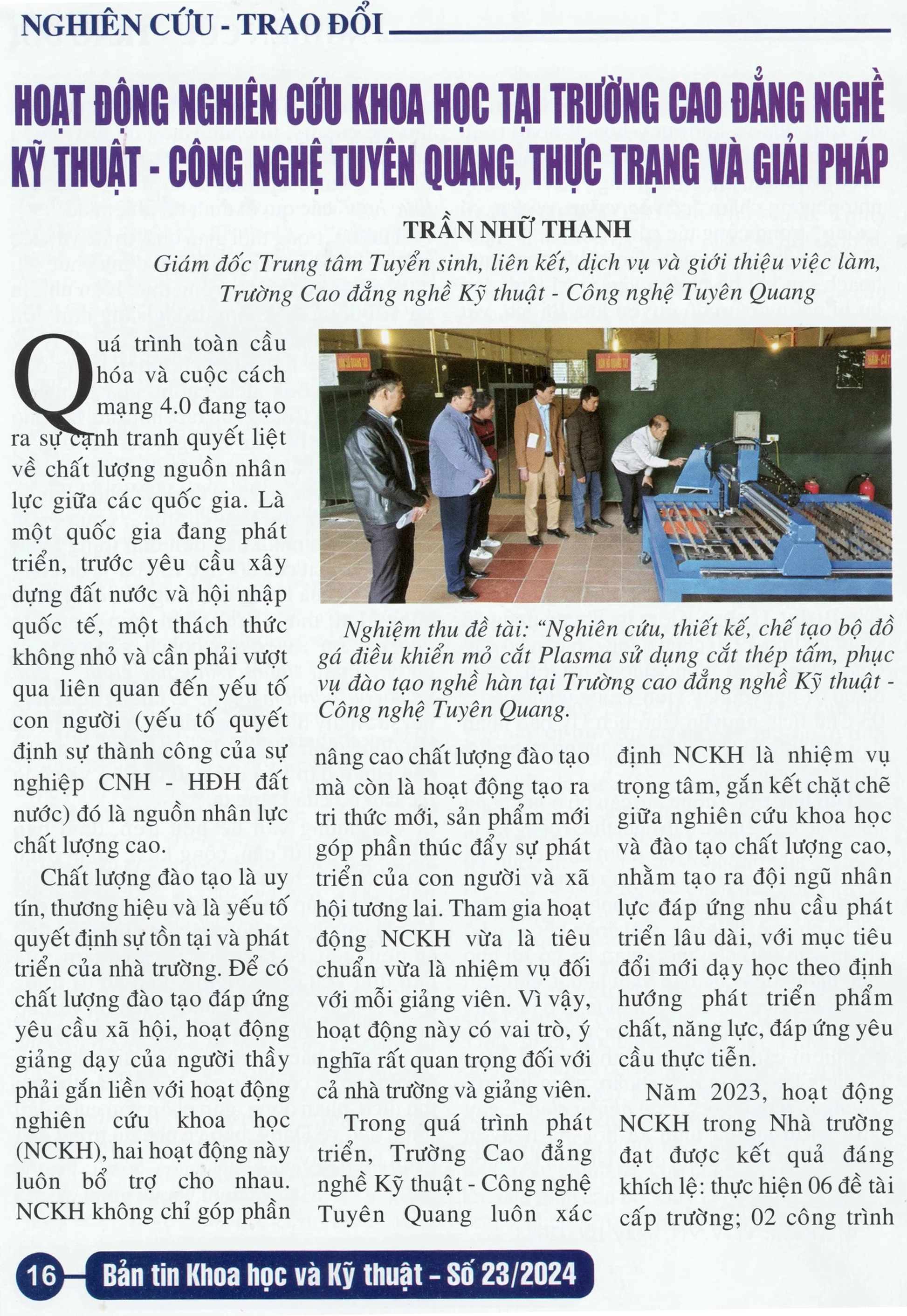 Trường Cao đẳng Tuyên Quang hợp tác với Công ty TNHH Trí tuệ nhân tạo Haizhichen Việt Nam