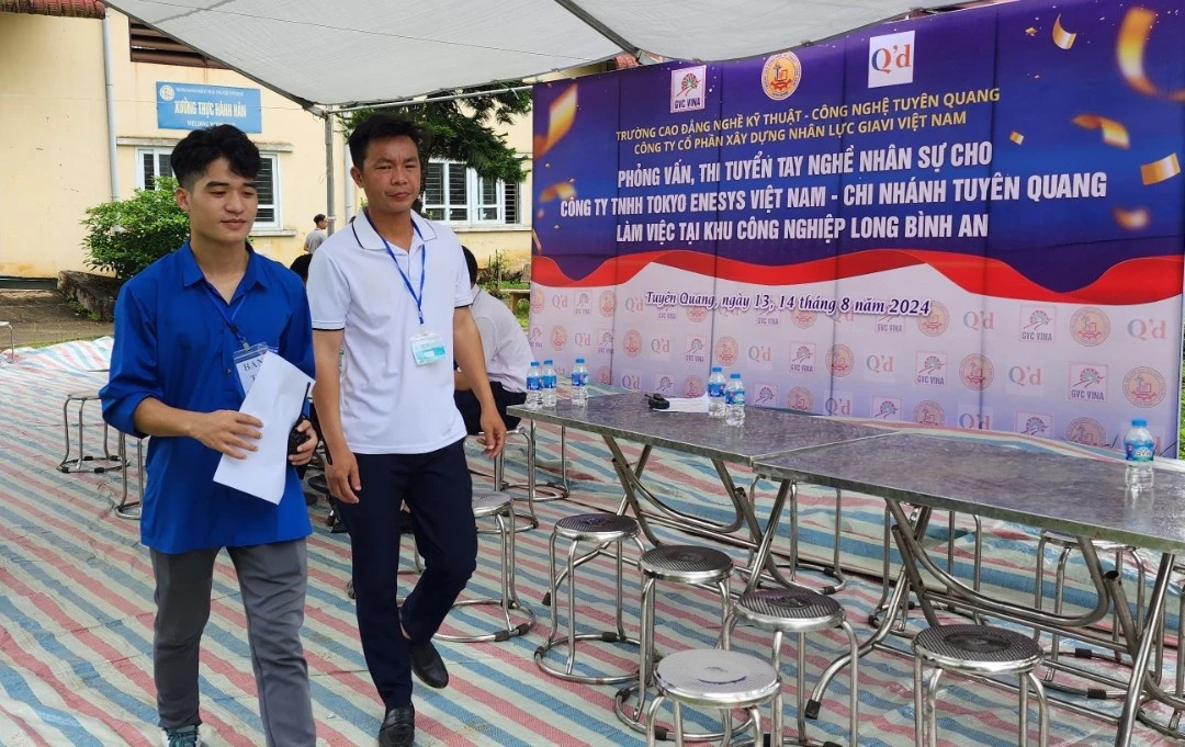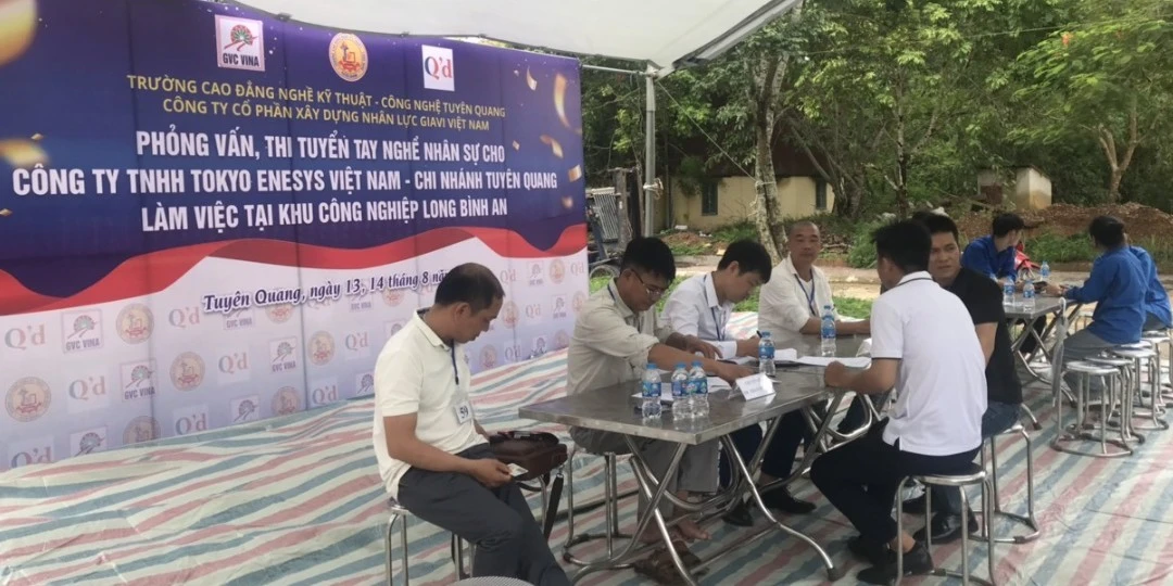 Ngày 13, 14/8/2024, Trường Cao đẳng nghề Kỹ thuật – Công nghệ Tuyên Quang phối hợp với Công ty Cổ phần xây dựng nhân lực Giavi Việt Nam tổ chức phỏng vấn, thi thực hành để tuyển dụng nhân công đã qua đào tạo nghề vào làm việc cho Công ty TNHH Tokyo Enesys Việt Nam tại Nhà máy nhiên liệu sinh khối Erex Sakura Biomass Tuyên Quang, Khu Công nghiệp Long Bình An, thành phố Tuyên Quang. Đây là Nhà máy có vốn đầu tư của doanh nghiệp Nhật Bản, được thiết kế có công suất 150.000 tấn viên nén sinh khối mỗi năm với số nhân công vận hành dự kiến 50 người, được khởi công ngày 06/3/2024 dự kiến đi vào vận hành từ tháng 11/2024. Công ty Cổ phần xây dựng nhân lực Giavi Việt Nam là đơn vị tư vấn tuyển dụng lao động vào làm việc tại Nhà máy nhiên liệu sinh khối Erex Sakura Biomass Tuyên Quang.