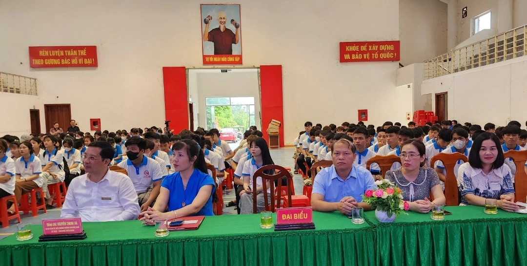 Đại biểu Sở Y tế, Công đoàn ngành Y tế, Trung tâm Kiểm soát dịch bệnh (CDC) Tuyên Quang và Lãnh đạo, cán bộ, giảng viên, sinh viên Trường Cao đẳng nghề Kỹ thuật - Công nghệ Tuyên Quang tham dự Mít tinh