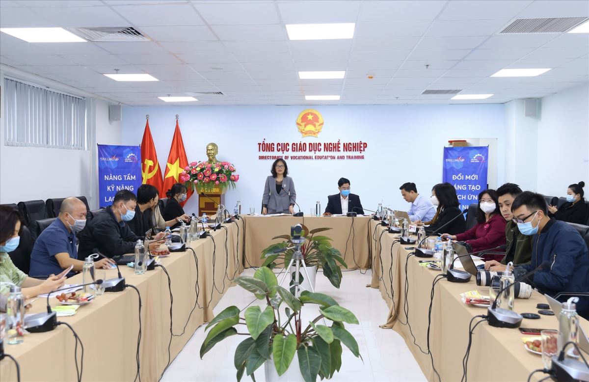 Bà Nguyễn Thị Việt Hương, Phó Tổng cục trưởng Tổng cục GDNN, Trưởng Ban Tổ chức Hội giảng nhà giáo GDNN toàn quốc năm 2021 thông tin với báo chí tại cuộc gặp sáng 9/11/2021