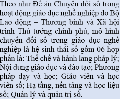 Theo Quyết định của Thủ tướng Chính phủ, để triển khai hoạt động chuyển đổi số trong giáo dục nghề nghiệp cần thực hiện 8 nhóm nhiệm vụ và giải pháp chủ yếu: