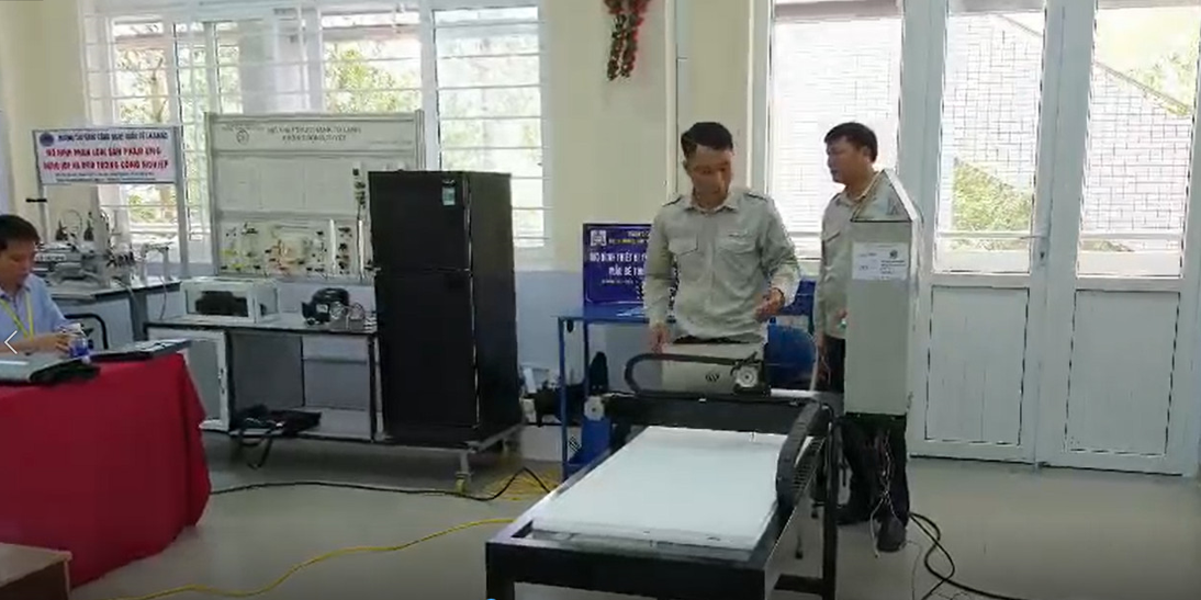 Nhà giáo Lê Ngọc Minh vận hành thiết bị trước Hội đồng giám khảo