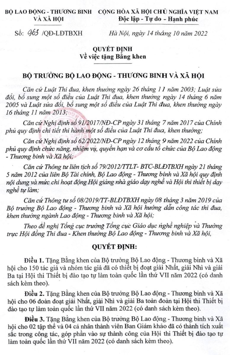 Hội thi thiết bị đào tạo tự làm toàn quốc năm 2022