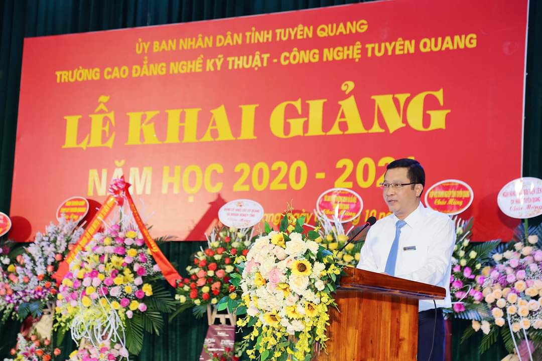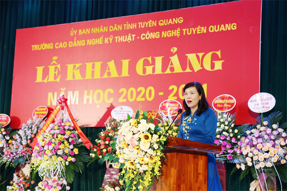 Phát biểu tại lễ khai giảng đồng chí Phạm Thị Minh Xuân, Ủy viên Ban Thường vụ Tỉnh ủy, Phó Chủ tịch Hội đồng nhân dân tỉnh đã chúc mừng các kết quả mà viên chức, giáo viên và học sinh, sinh viên Nhà trường đã đạt được trong năm học 2019-2020. Đề nghị trong thời gian tới Nhà trường cần tiếp tục nâng cao chất lượng đào tạo, chất lượng đội ngũ cán bộ giáo viên; chủ động đào tạo theo nhu cầu tuyển dụng và phát triển các ngành nghề phù hợp với nhu cầu phát triển kinh tế- xã hội của tỉnh. Đồng thời tăng cường hơn nữa trong việc trao đổi và chia sẻ kinh nghiệm với các trường đào tạo nghề uy tín trong nước và quốc tế. Phấn đầu xây dựng trường Cao đẳng nghề Kỹ thuật – Công nghệ Tuyên Quang thành trường trọng điểm về đào tạo công nhân kỹ thuật có trình độ cao góp phần chuyển dịch cơ cấu lao động đáp ứng nhu cầu phát triển kinh tế - xã hội của tỉnh và đất nước …