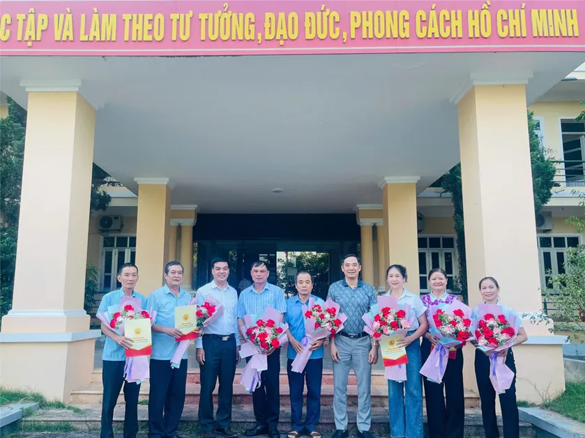 Ban giám hiệu chụp ảnh kỷ niệm với các đồng chí nghỉ hưu trước tuổi theo Nghị định số 178/2024/NĐ-CP