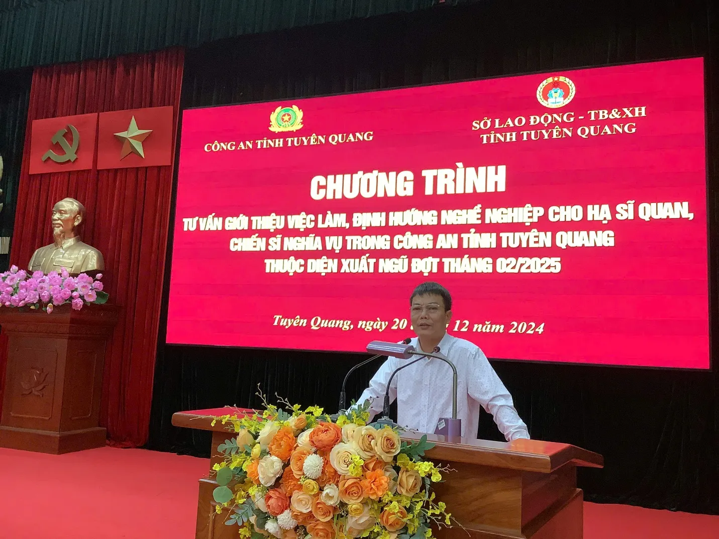 Sáng ngày 20/12/2024, Công an tỉnh Tuyên Quang phối hợp với Sở Lao động, Thương binh và Xã hội tổ chức chương trình tư vấn định hướng nghề nghiệp, giới thiệu việc làm cho hạ sỹ quan, chiến sỹ công an nhân dân hoàn thành nghĩa vụ, chuẩn bị xuất ngũ đợt tháng 2/2025.