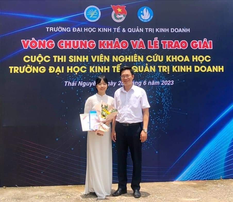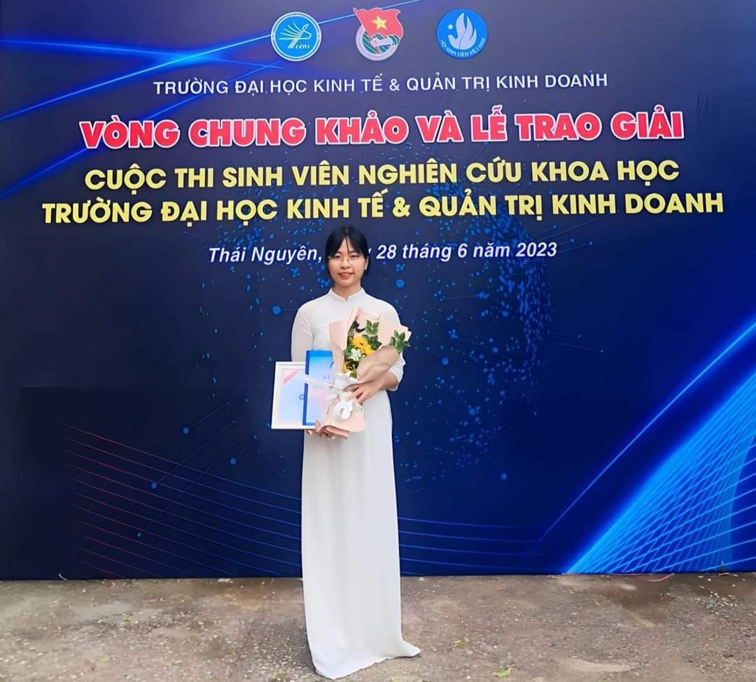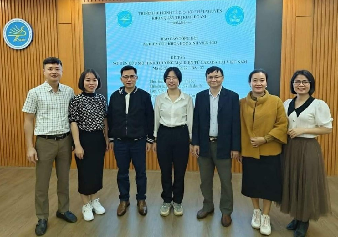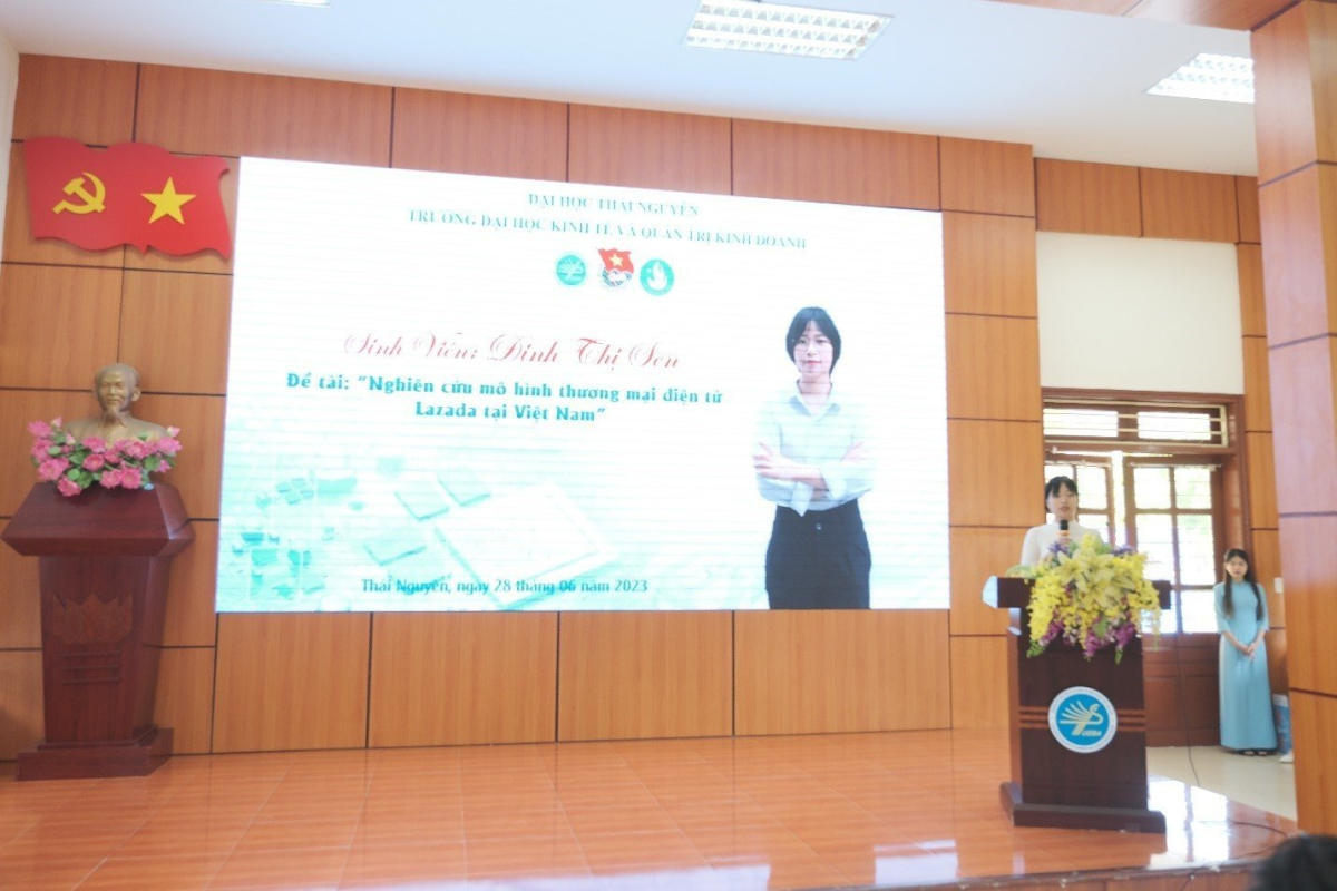 Vượt qua hơn 100 đề tài nghiên cứu ứng dụng được đăng ký và triển khai, 18 đề tài chất lượng được đề cử tham gia tranh tài ở vòng Sơ khảo và có 06 đề tài xuất sắc đã lọt vào vòng chung kết Cuộc thi sinh viên nghiên cứu khoa học 2023, đề tài "Nghiên cứu mô hình thương mại điện tử Lazada tại Việt Nam" đạt giải Ba chung kết.Bảo vệ trước Hội đồng Giám khảo, Trường Đại học Kinh tế và Quản trị kinh doanh (Thái Nguyên).
