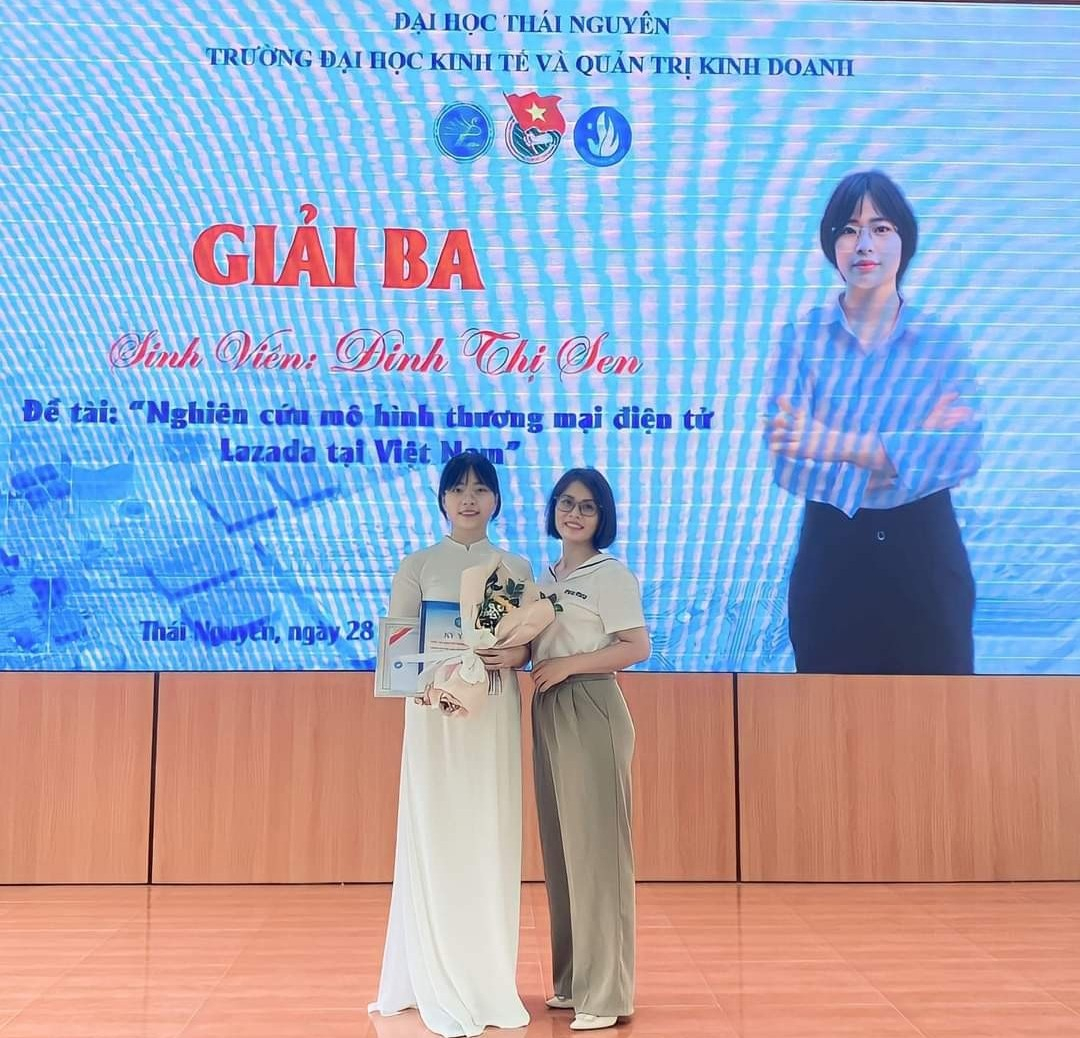 Trong quá trình học tại Trường Đại học Kinh tế và Quản trị kinh doanh (Thái Nguyên), với kiến thức, kỹ năng chuyên ngành Kinh tế đã có được khi học Trung cấp Kế toán doanh nghiệp và các kiến thức nâng cao khi học Đại học năm thứ 2, em Đinh Thị Sen đã tham gia cuộc thi Sinh viên Nghiên cứu khoa học với đề tài "Nghiên cứu mô hình thương mại điện tử Lazada tại Việt Nam".