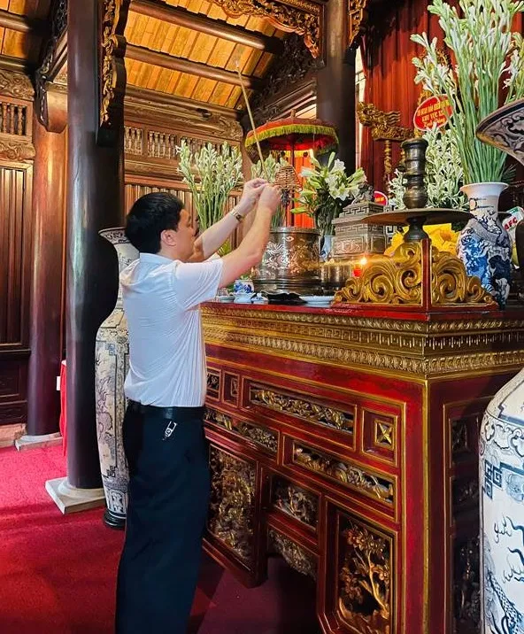 Đồng chí Đỗ Xuân Trường, Bí thư Đảng bộ, Hiệu trưởng Nhà trường đại diện đại biểu dâng hương, dâng hoa tại Đền thờ Bác Hồ