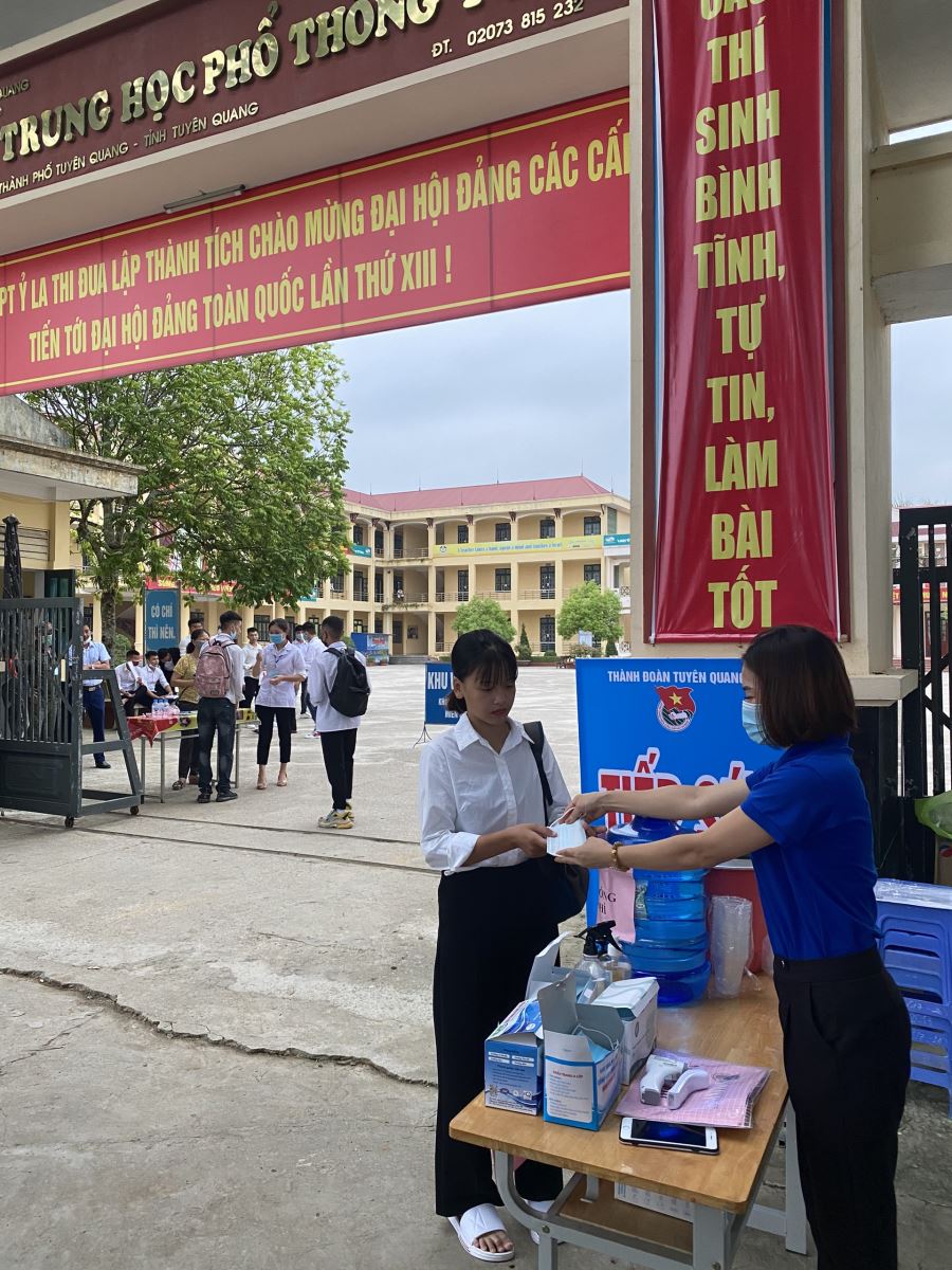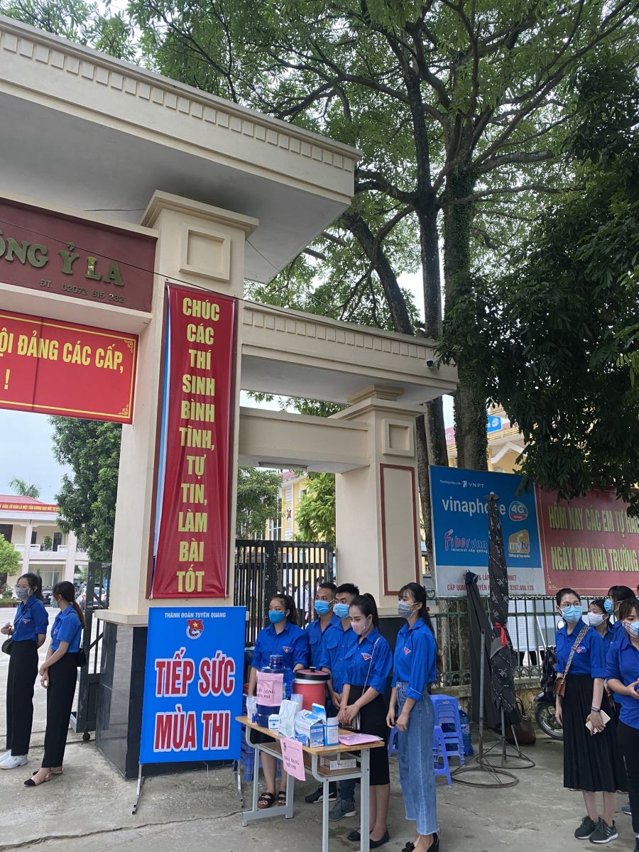 Phối hợp với Đoàn thanh niên phường Ỷ La, Đoàn thanh niên trường Cao đẳng nghề Kỹ thuật – Công nghệ Tuyên Quang tổ chức triển khai tư vấn, hướng dẫn, hỗ trợ thí sinh về thông tin tuyển sinh, hướng dẫn phòng thi, phát nước uống, xử lý các tình huống khẩn cấp, xe ôm miễn phí. Đặc biệt năm nay hoạt động tiếp sức mùa thi còn tổ chức phát khẩu trang y tế miễn phí, phát nước sát khuẩn và hướng dẫn thí sinh đeo khẩu trang đúng cách, sát khuẩn tay trước khi vào phòng thi.