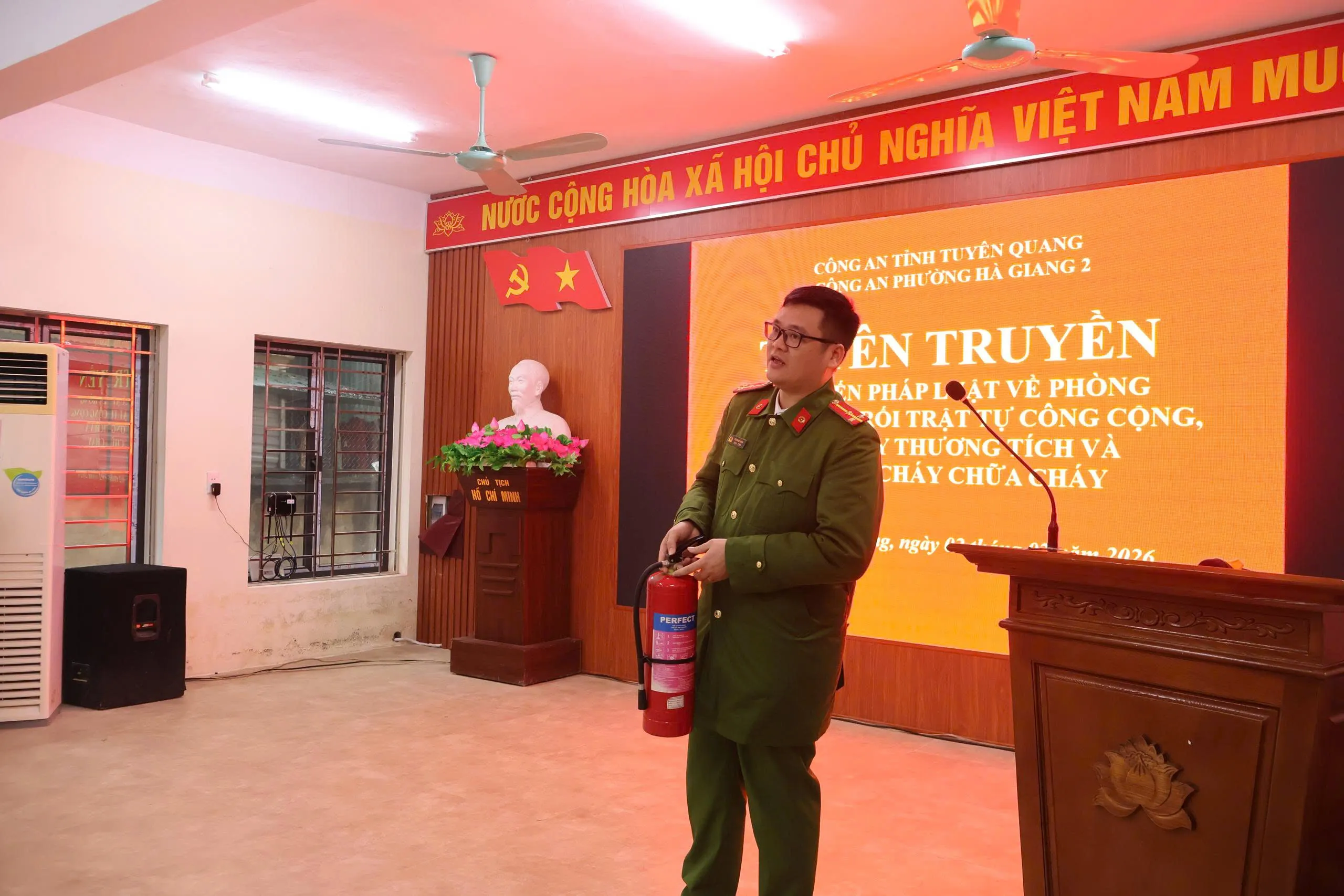 Bên cạnh nội dung đối thoại, nhằm tăng cường công tác giáo dục pháp luật, phòng ngừa vi phạm pháp luật và tệ nạn xã hội trong học sinh, sinh viên dịp trước, trong và sau Tết Nguyên đán, các báo cáo viên đến từ Phòng Cảnh sát Hình sự – Công an tỉnh Tuyên Quang và Công an phường Hà Giang 2 đã trực tiếp tuyên truyền, phổ biến những nội dung trọng tâm của pháp luật liên quan đến quản lý, sử dụng vũ khí, vật liệu nổ, công cụ hỗ trợ và pháo; phòng, chống tội phạm, bạo lực, xâm hại; đảm bảo trật tự an toàn giao thông trong dịp Tết Nguyên đán.