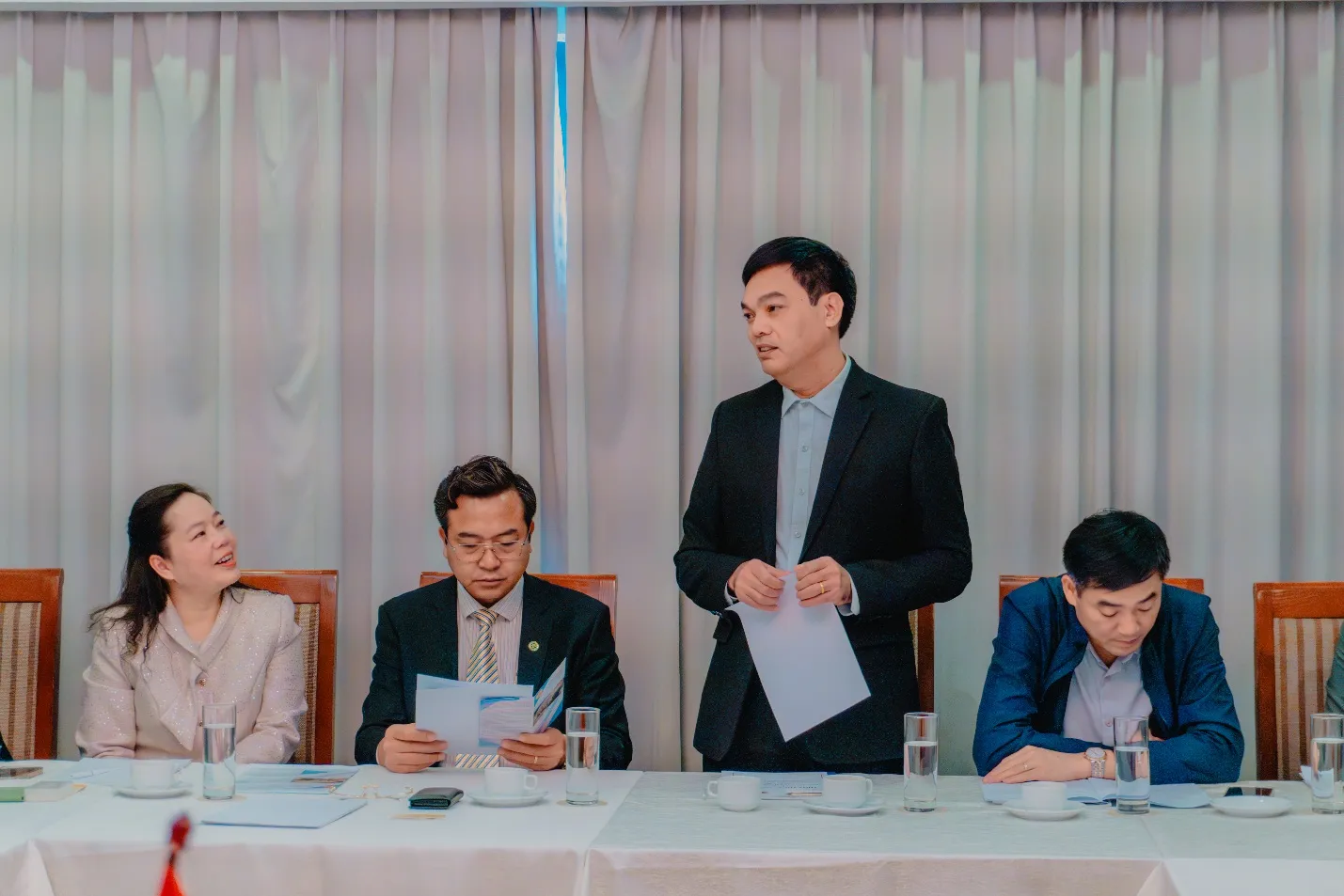 Tham dự Lễ ký kết thỏa thuận hợp tác, về phía Tập đoàn Bảo Sơn, có các đại biểu: Bà Nguyễn Thanh Thủy - Phó Chủ tịch Tập đoàn Bảo Sơn; Ông Vũ Duy An - Phó Tổng Giám đốc kiêm Giám đốc Đối ngoại Chiến lược Tập đoàn Bảo Sơn; Ông Trương Quốc Trung - Phó Giám đốc Bệnh viện Bảo Sơn; Ông Nguyễn Thanh Sơn - Phó Tổng Giám đốc Bảo Sơn Corp; Ông Nguyễn Anh Tú - Phó Giám đốc Bảo Sơn Travel; Bà Huỳnh Thị Ngọc Mai - Trợ lý Tổng Giám đốc; Bà Nguyễn Thị Hoài Thu - Giám đốc dự án Đài Loan - Hàn Quốc; Ông Nguyễn Minh Tài - Trưởng phòng tuyển dụng Công ty TNHH phát triển nguồn nhân lực Bảo Sơn (Bảo Sơn Manpower); Bà Nguyễn Thị Thược - Trưởng phòng tuyển sinh Bảo Sơn Education; Ông Nguyễn Tiến Đạt - Cán bộ tuyển sinh.