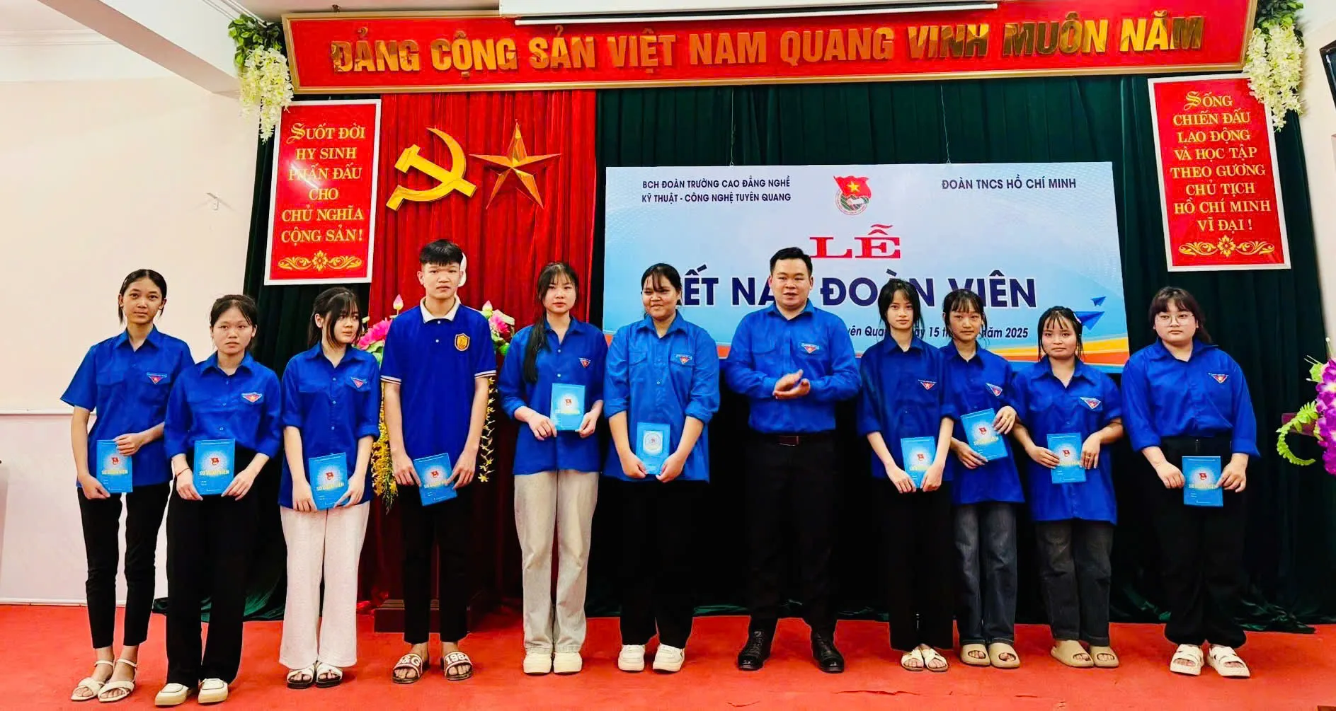 Sáng ngày 15/5/2025 Đoàn thanh niên cộng sản Hồ Chí Minh trường Cao đẳng nghề Kỹ thuật – Công nghệ Tuyên Quang tổ chức Lễ kết nạp Đoàn viên thanh niên cho 90 học sinh, sinh viên ưu tú của Nhà trường.