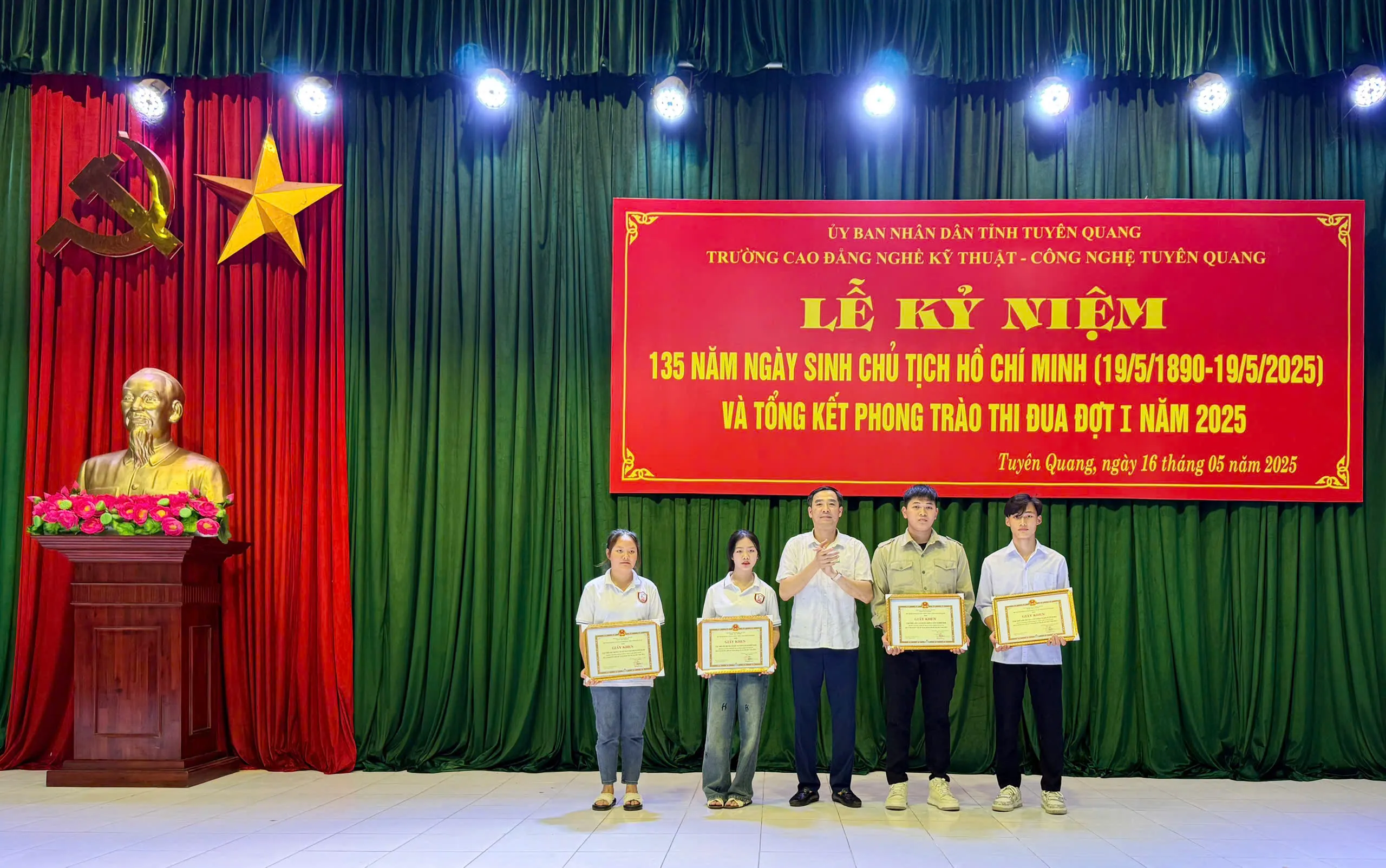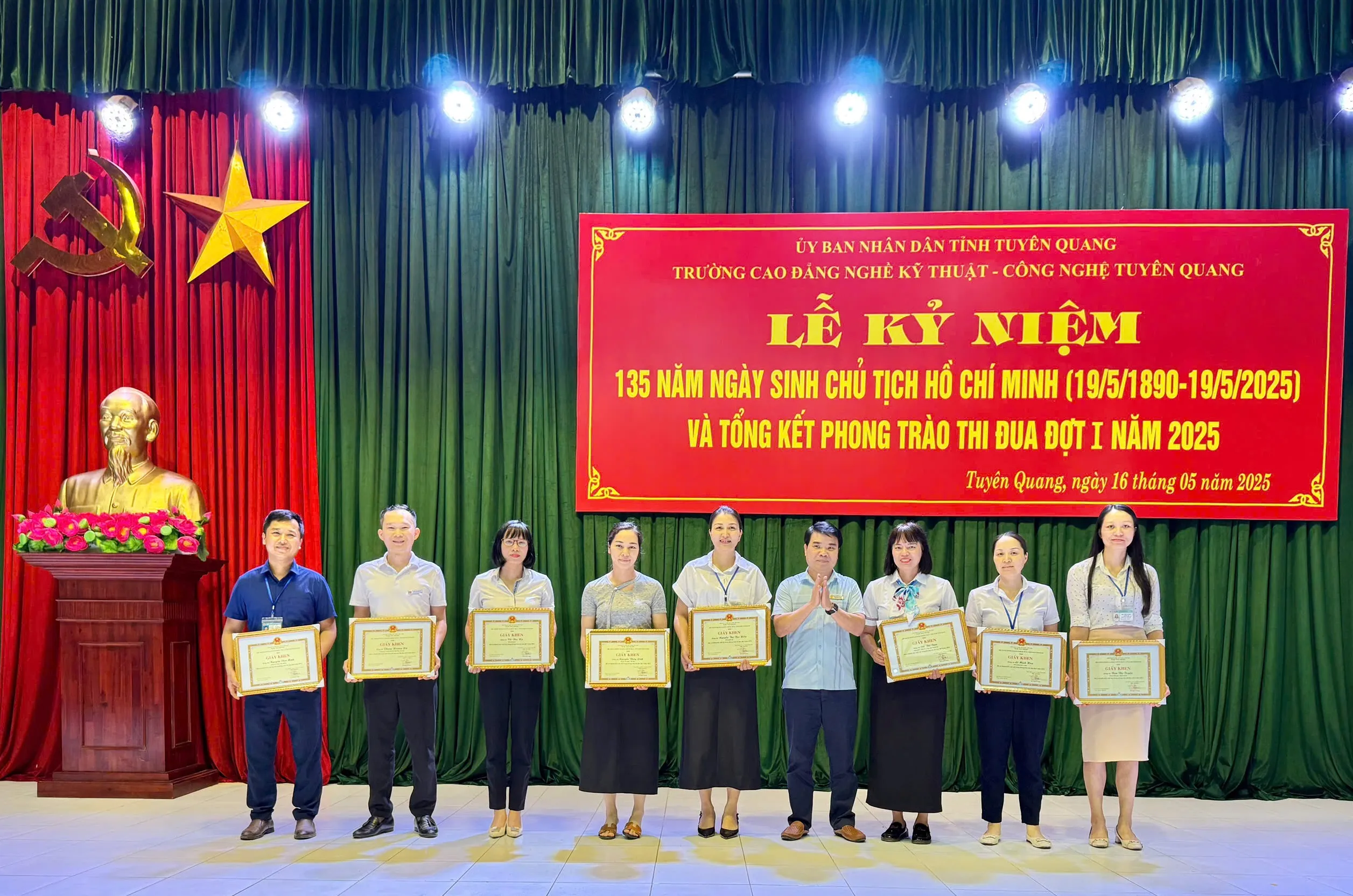 Sáng ngày 16/5/2025 Trường Cao đẳng nghề Kỹ thuật – Công nghệ Tuyên Quang tổ chức Lễ kỷ niệm 135 năm ngày sinh Chủ tịch Hồ Chí Minh (19/5/1890 - 19/5/2025) và tổng kết thi đua đợt I năm 2025.