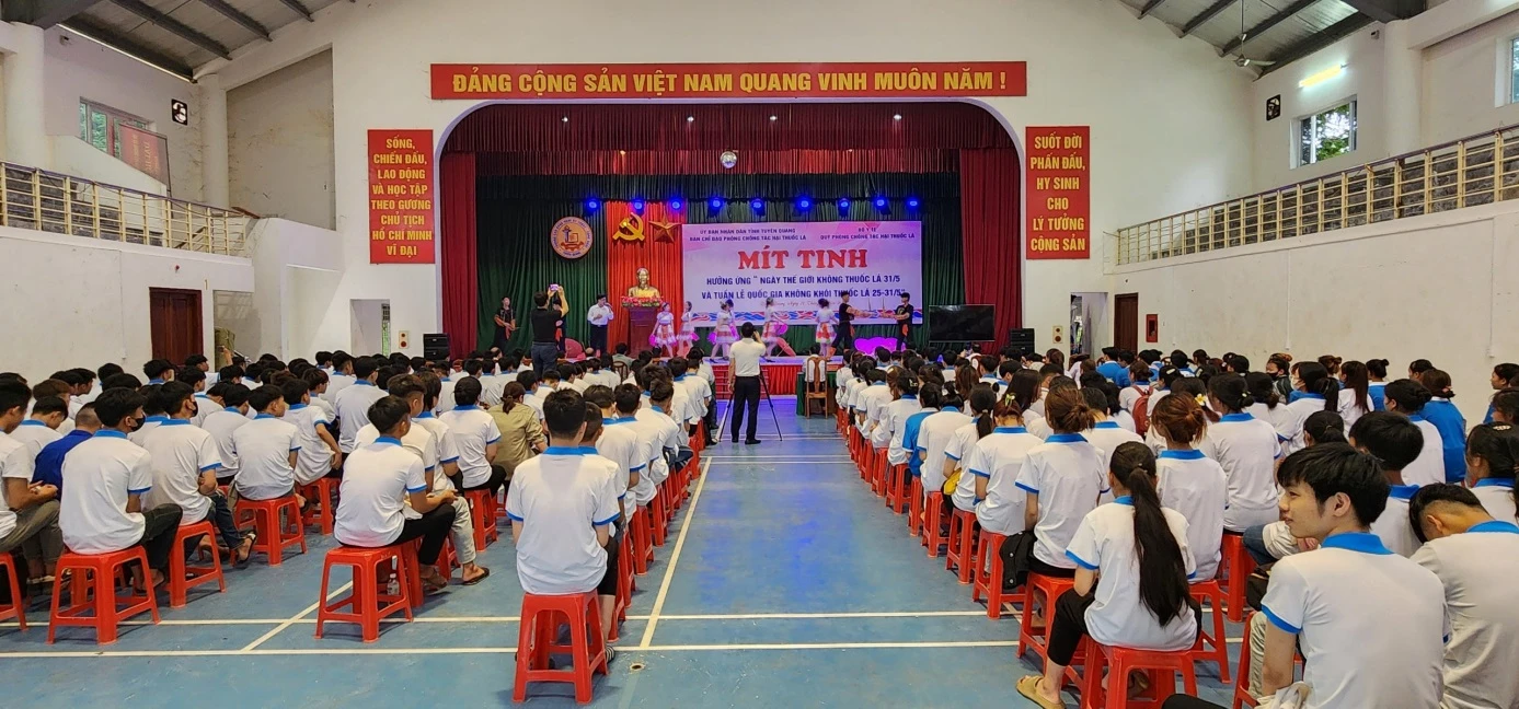 Ngày 31/5/2024, Sở Y tế phối hợp với Trường Cao đẳng nghề Kỹ thuật - Công nghệ Tuyên Quang tổ chức Lễ mít tinh, diễu hành hưởng ứng Ngày Thế giới không thuốc lá 31/5/2024 và Tuần lễ Quốc gia không thuốc lá từ ngày 25 - 31/5/2024.