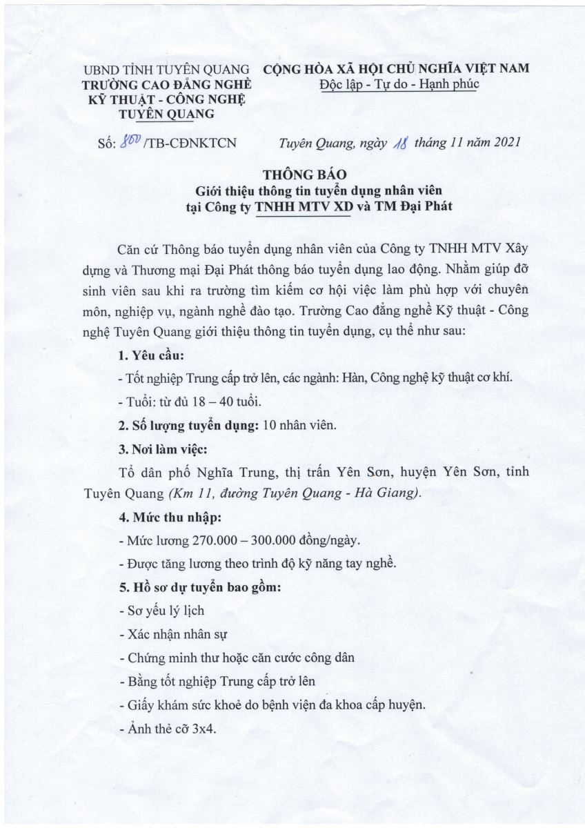 Trường Cao đẳng Tuyên Quang hợp tác với Công ty TNHH Trí tuệ nhân tạo Haizhichen Việt Nam