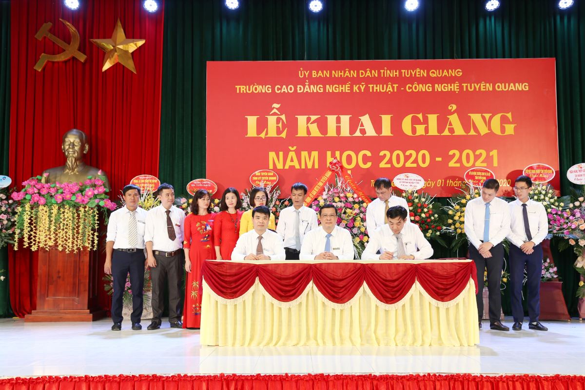 Phát biểu tại lễ khai giảng đồng chí Phạm Thị Minh Xuân, Ủy viên Ban Thường vụ Tỉnh ủy, Phó Chủ tịch Hội đồng nhân dân tỉnh đã chúc mừng các kết quả mà viên chức, giáo viên và học sinh, sinh viên Nhà trường đã đạt được trong năm học 2019-2020. Đề nghị trong thời gian tới Nhà trường cần tiếp tục nâng cao chất lượng đào tạo, chất lượng đội ngũ cán bộ giáo viên; chủ động đào tạo theo nhu cầu tuyển dụng và phát triển các ngành nghề phù hợp với nhu cầu phát triển kinh tế- xã hội của tỉnh. Đồng thời tăng cường hơn nữa trong việc trao đổi và chia sẻ kinh nghiệm với các trường đào tạo nghề uy tín trong nước và quốc tế. Phấn đầu xây dựng trường Cao đẳng nghề Kỹ thuật – Công nghệ Tuyên Quang thành trường trọng điểm về đào tạo công nhân kỹ thuật có trình độ cao góp phần chuyển dịch cơ cấu lao động đáp ứng nhu cầu phát triển kinh tế - xã hội của tỉnh và đất nước …