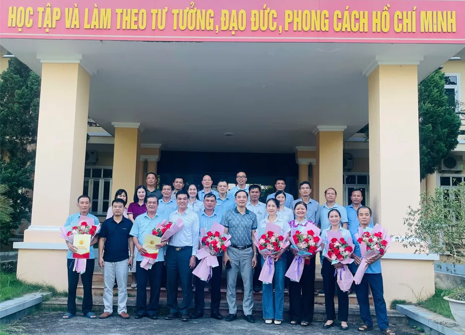 Ban giám hiệu chụp ảnh kỷ niệm với các đồng chí nghỉ hưu trước tuổi theo Nghị định số 178/2024/NĐ-CP