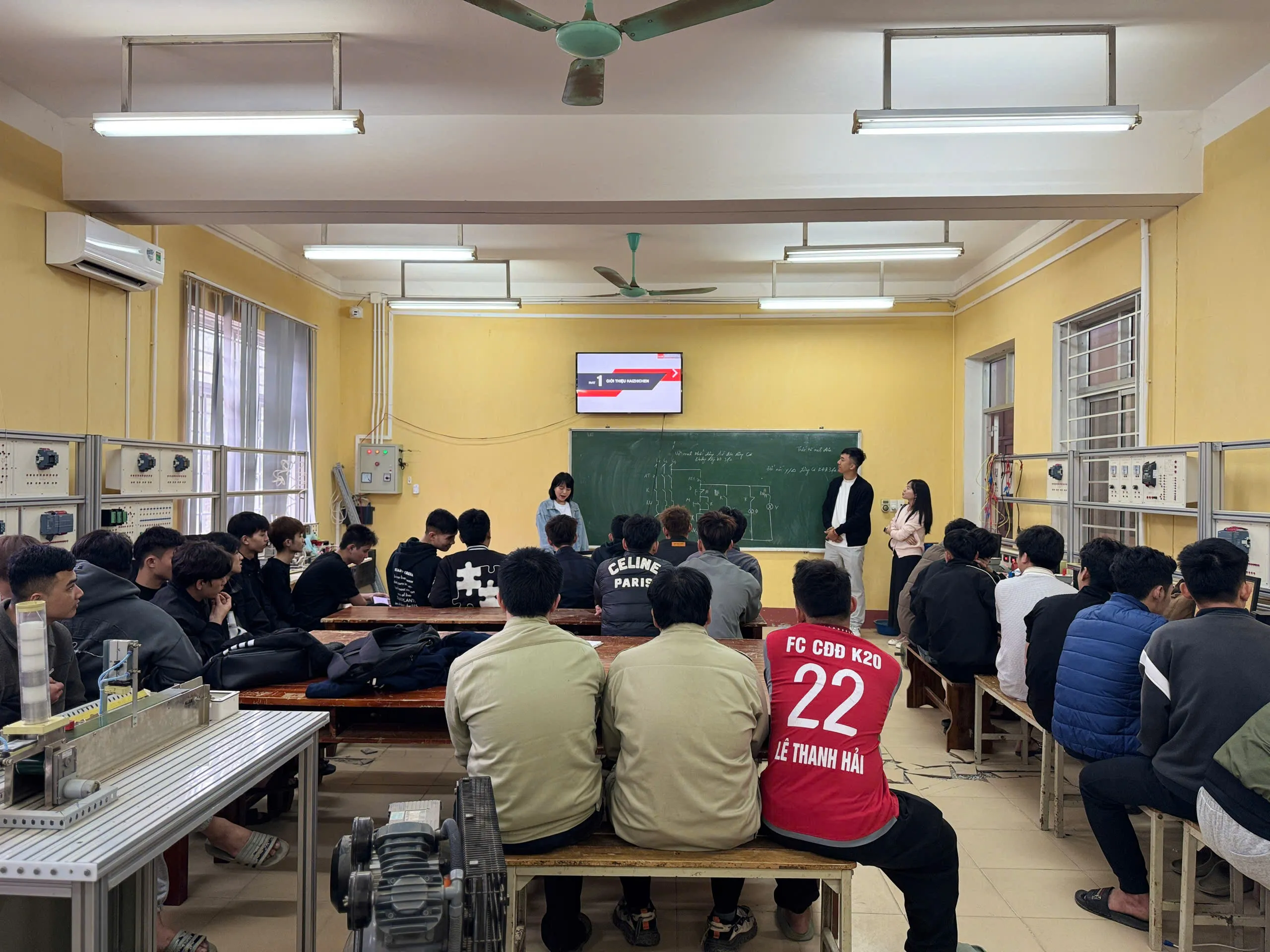 Ngay sau cuộc họp, đại diện Công ty Haizhichen đã có buổi tư vấn trực tiếp cho các em học sinh thuộc lớp Điện công nghiệp và Công nghệ Ô tô K20. Tại đây, các em đã được giải đáp cụ thể về lộ trình học tập, thực tập và những cơ hội việc làm rộng mở trong lĩnh vực công nghiệp và trí tuệ nhân tạo sau khi tốt nghiệp.