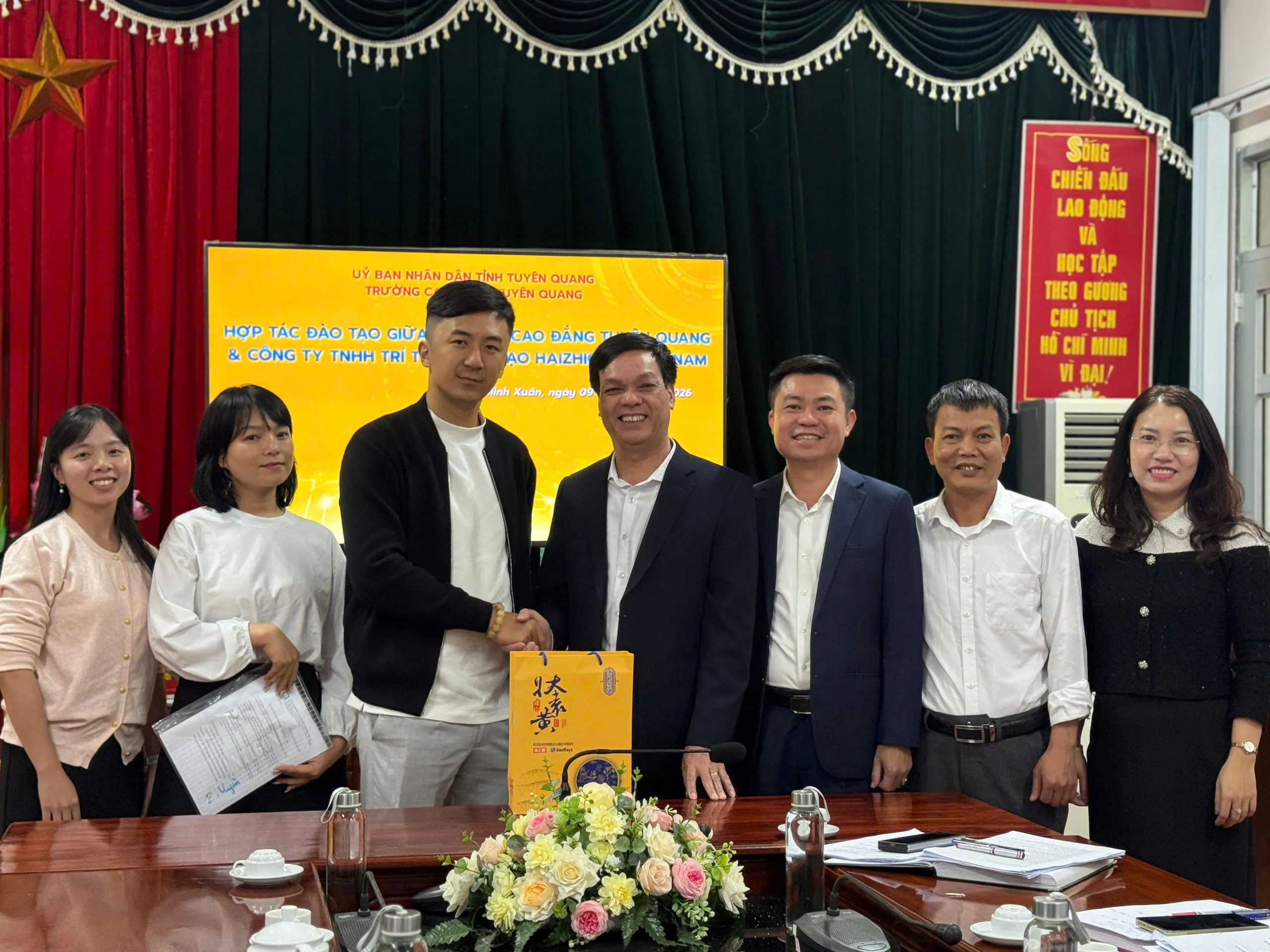 Ngày 09/03/2026, Trường Cao đẳng Tuyên Quang đã có buổi làm việc quan trọng với Công ty TNHH Trí tuệ nhân tạo Haizhichen Việt Nam nhằm triển khai các hạng mục hợp tác chiến lược đã ký kết về đào tạo nhân lực chất lượng cao và trao đổi giáo dục quốc tế.