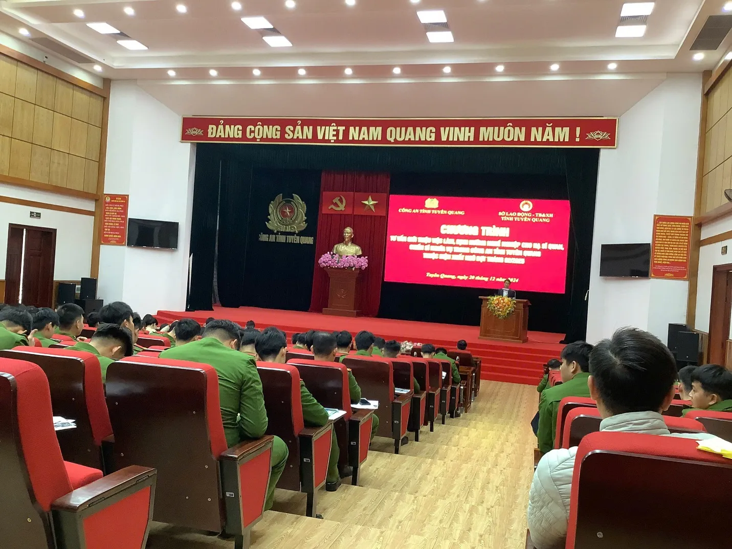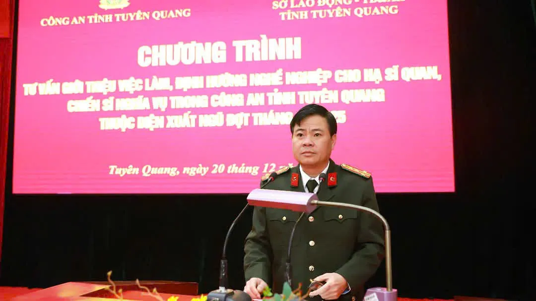Sáng ngày 20/12/2024, Công an tỉnh Tuyên Quang phối hợp với Sở Lao động, Thương binh và Xã hội tổ chức chương trình tư vấn định hướng nghề nghiệp, giới thiệu việc làm cho hạ sỹ quan, chiến sỹ công an nhân dân hoàn thành nghĩa vụ, chuẩn bị xuất ngũ đợt tháng 2/2025.
